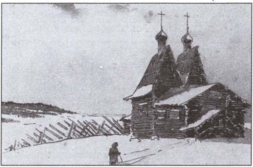 Церковь в Деулино XVII в. Церковь Троицкая в селе Неноса. XVII в. Акварели Д.П. Сухова