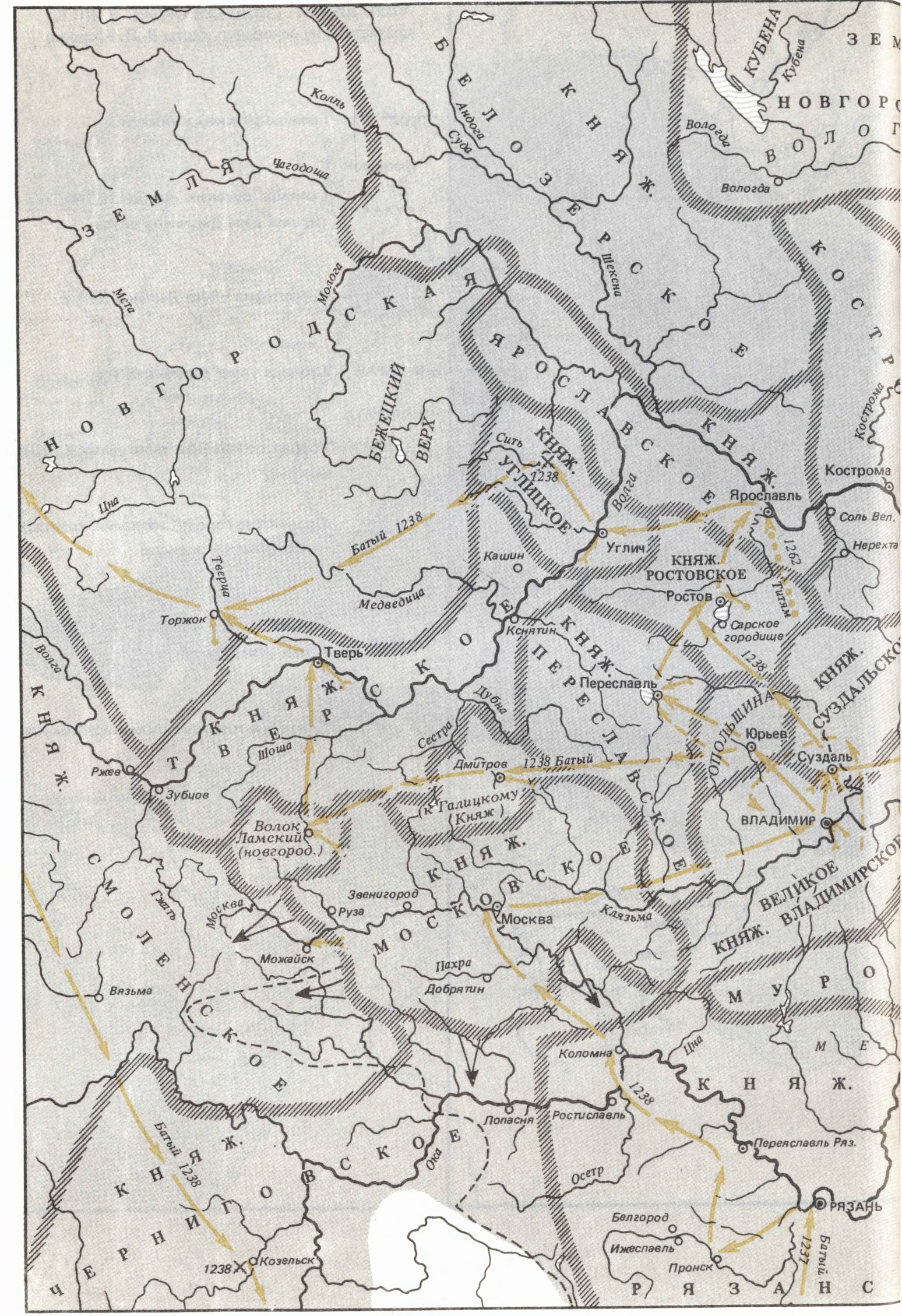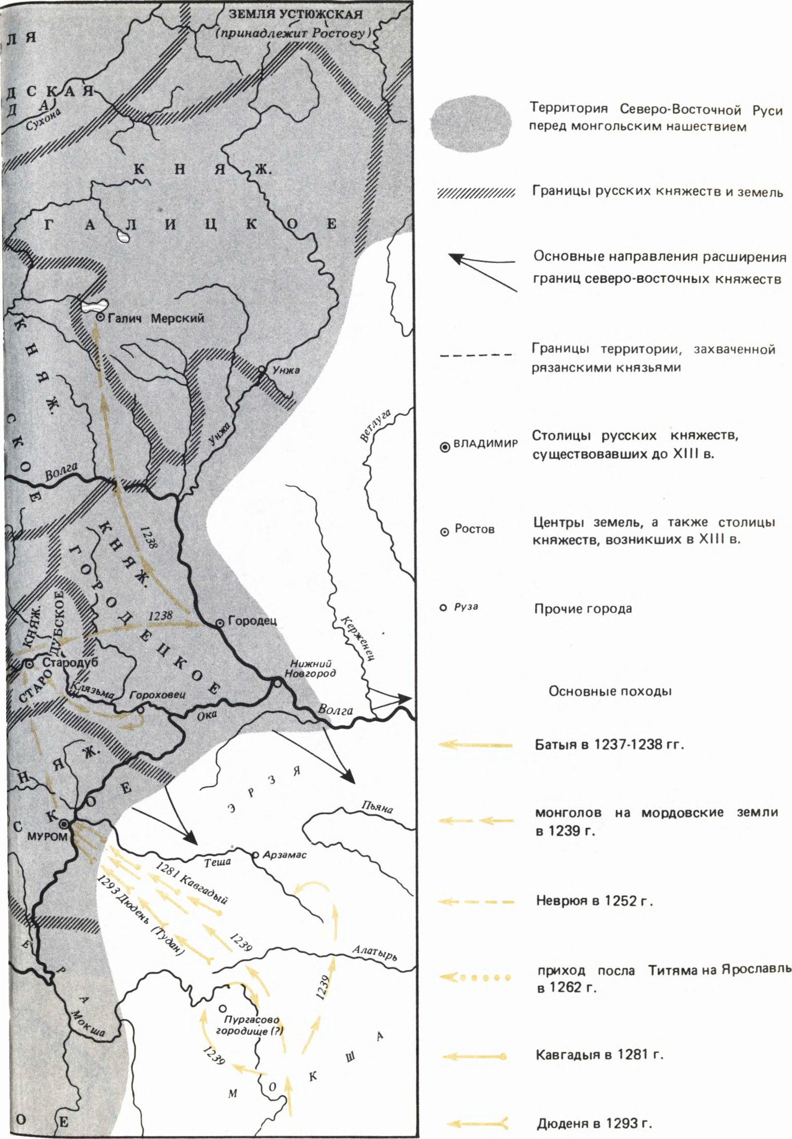 Северо-восточная Русь с 1200 г. до 1305 г. и монгольское завоевание (составлена на основании карты И.А. Голубцова)