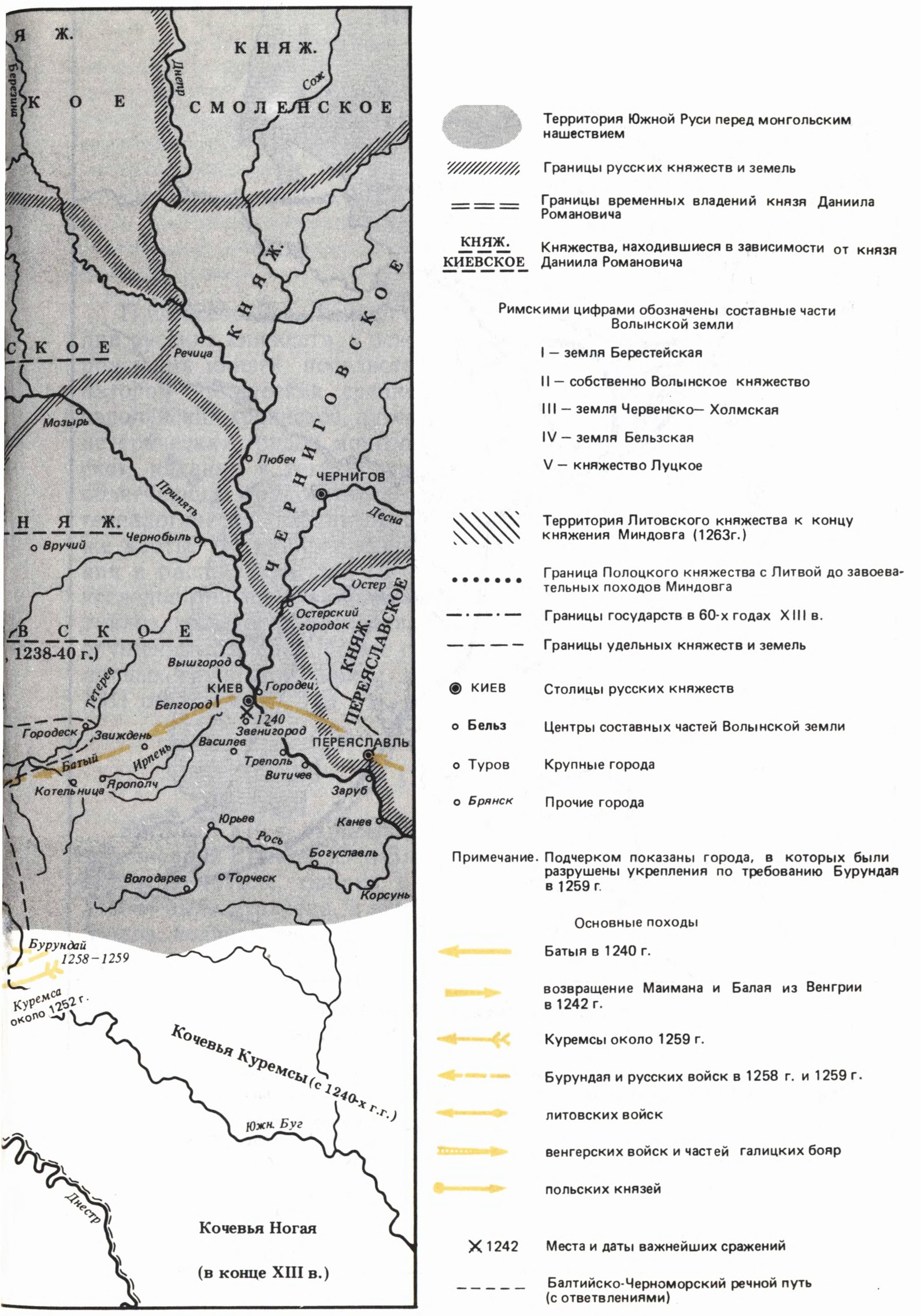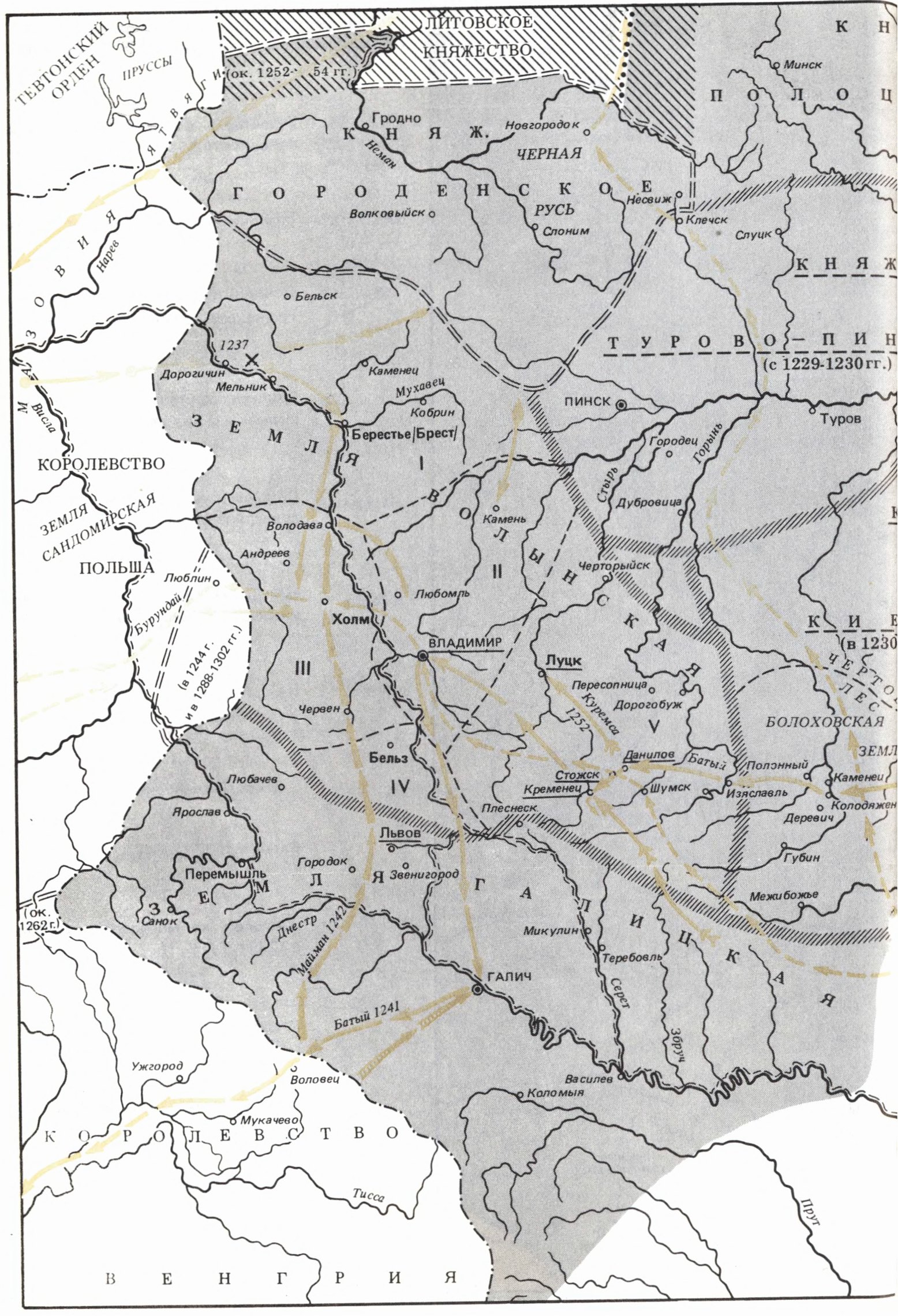 Галицко-Волынская русь и монгольское нашествие в первой половине XIII в. (составлена на основании карты И.А. Голубцова с поправками Н.Н. Коринного)