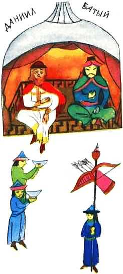 Батый принял Даниила неожиданно дружелюбно. Будто бы он встретил его восклицанием: «Данило! Зачем так долго не приходил! Но все хорошо, что теперь пришел. Пьешь ли черное молоко, наше питье, кобылий кумыс?