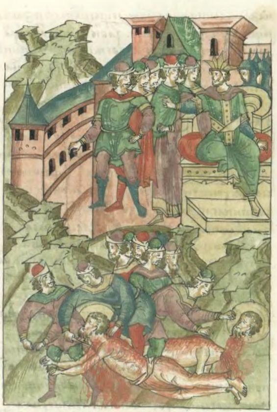 Казнь князя Михаила Черниговского в Орде. Лицевой летописный свод XVI века. Лаптевский том. Л. 975
