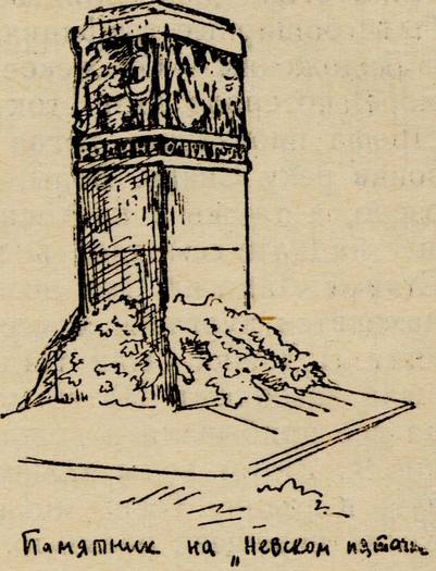 И вот здесь, в Невской Дубровке, в середине октября ежегодно встречаются участники боев за «пятачок». Сперва нас было на этих сборах немного, а теперь приезжают чуть ли не тысячи не только из Ленинграда, но и со всего Союза. Здесь это большой праздник. Кроме нас, ветеранов, приходят воинские части со знаменами и оркестрами, рабочие, такие, как вы, школьники, и мы все идем по Дороге славы...