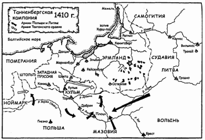 Даже те немногие немцы, кто допускал, что Ягайло решится на войну, не ожидали, что гнев Великого магистра, запрет на торговлю с Польшей и Литвой и набег на Мазовию и Великую Польшу приведут к грандиозной битве. Во-первых, крупные сражения были редкостью — слишком велик был риск и слишком мала материальная награда, особенно в сравнении с безопасными набегами на земли, обороняемыми лишь почти безоружными крестьянами, или выбивание выкупа с горожан. Во-вторых, за исключением отдельных случайных конфликтов, таких как в 1409 году, между Польшей и Пруссией вот уже семьдесят лет сохранялся мир. Вопрос о Самогитии был решен договорами Салинским в 1398 году и в Рационже в 1404 году, поэтому война с Литвой казалась маловероятной. Немногие из живущих могли помнить последние значительные вторжения поляков и литовцев. Да, можно было ждать пограничного набега на какую-нибудь слабо защищенную приграничную область Восточной Пруссии, но потом снова будет подписан мир. В принципиальном вопросе о Самогитии литовцы, конечно же, отступят в 1410 году, как отступили поляки в 1409-м!
